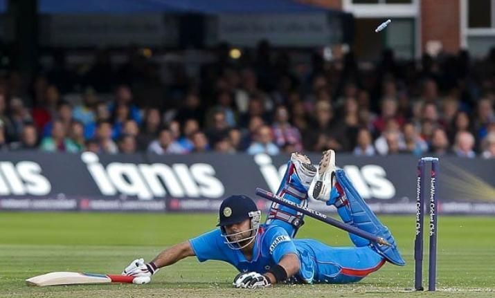 Dinesh Karthik reverse swept a Ray Price delivery towards short third man and the young legs of Kohli and Karthik decided to steal a cheeky single. However, to Kohli's horror, Elton Chigumbara fired in a direct hit that found the diving Virat short of the ground, forcing the Indian gem to settle with a diamond duck on his way back to the pavilion.