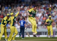 After the teams emerged from the lunch break with the Australian score being 38/2 after 10 overs, George Bailey (41* off 45) and Aaron Finch (70* off 64) got on with their scoring rates, taking their team across the target in only 24.2 overs.