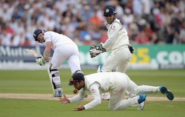 The left-right combination of Gary Ballance and Sam Robson resuming from the overnight score of 43 for one and batted very patiently to keep India afloat on the first hour of the morning. The duo batted at a very slow rate and survived some edges that failed to carry. Ishant Sharma managed to hit the gloves of Robson once, and was turned down on a leg-before appeal. Virat Kohli spilled a tough chance off the spinner Ravindra Jadeja at leg slip, but, the pair hung in and made sure England end the session without losing a wicket at lunch.