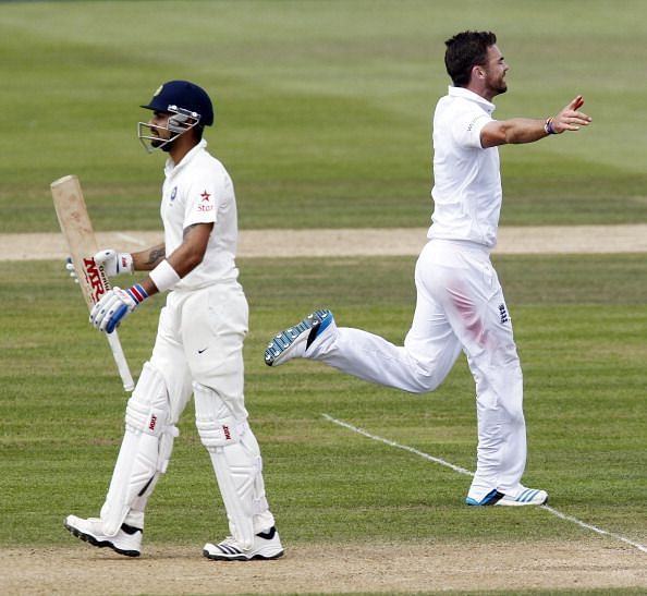 James Anderson, as we know how dangerous he can be, troubled Virat with the ball throughout the entire series and managed to dismiss him on four occasions. He sent Virat packing by getting him either caught behind or at slips, the good old-fashioned pacer way.