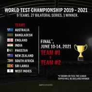The ‘World Test Championship’ which will start in 2019 will be played over two-year cycles meaning the round robin matches will be played between July 2019 and April 2021. Nine out of twelve Test-playing nations will take part in this as they contest in 27 series in this period. Every team will have to play three-Test series at home as well as overseas. The top two teams with a maximum number of points at the end of two years will play the final which is scheduled between June 10-14,2021 in England.