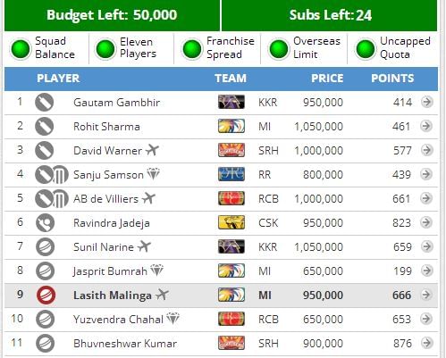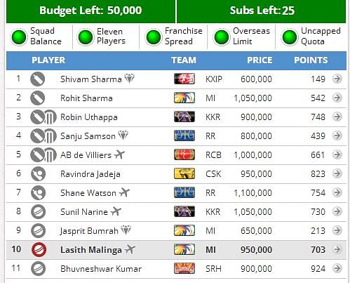With Rohit Sharma and Lasith Malinga in my team, the two other Mumbai players who draw attention are Ambati Rayudu and Praveen Kumar. Rayudu was 1 of the 4 budget picks that I built my team around at the start of the competition, but it looks like he waited till I threw him out, to deliver. I don’t see him coming into my team again at the cost of a transfer, and, moreover, he won’t harm much by staying out.