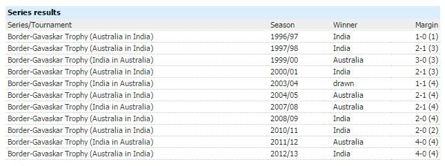 Over the years, the “Border Gavaskar Trophy” has become one of the most watched test match contests. In 11 editions played so far, only once has a visiting team drawn the series (India- 2003-04) and only once has a visiting team won the series (Australia 2004-05).