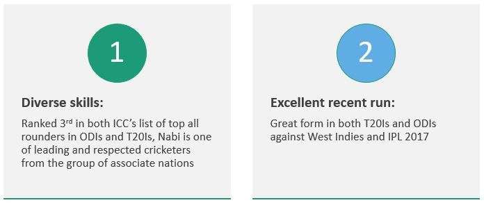 There are very few cricketers other than Nabi who deserve as much credit as him in bringing Afganistan to the centre stage of world cricket. In an event where cricket is celebrated, talent is acclaimed, leadership skills are venerated, Nabi would have proved a great ambassador of the game on the world stage.