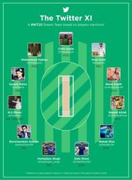 "This dream team is composed of the most-mentioned #WT20 players on Twitter over the past 12 months, forming a first XI that would be the envy of any coach," Twitter said in a release.