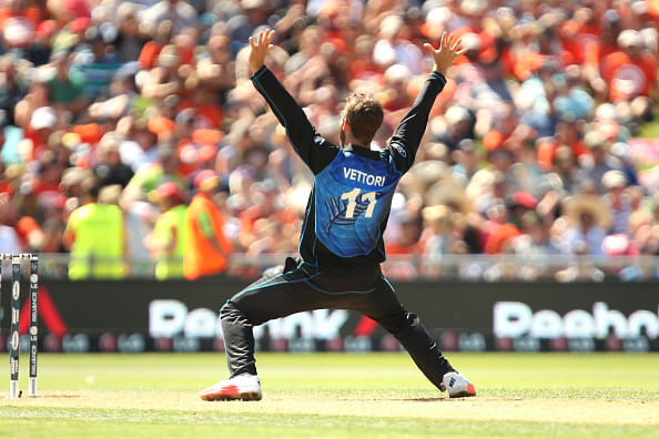 From 6/2 in the third over, they stooped to 59/6 in the 20th over. Asghar Stanikzai (9) lost his wicket to left-armer Boult. Vettori dismissed in-form Nawroz Mangal (27), skipper Mohammad Nabi (6) and wicketkeeper-batsman Afsar Zafai (0) as the Cup debutants stumbled to 59/6.