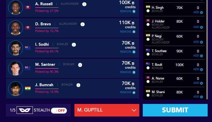 With the next match between India and West Indies, Andre Russell and Dwayne Bravo are self-explanatory. Jasprit Bumrah might raise a few eyebrows, but I need a few calculated differentials at this point – the Indian speedster has been bowling exceptionally well at the death that his wickets can’t be far away.