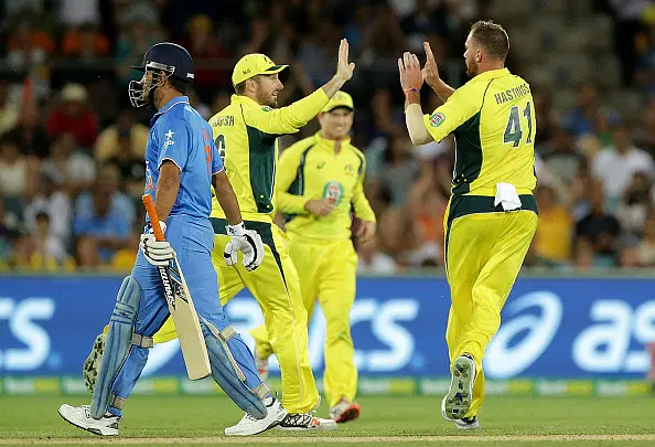 India were cruising to victory till the 38th over, when perhaps Australia’s most experienced bowler in their line-up in the shorter format, John Hastings, got Dhawan caught at point by Bailey. This was followed by the Indian captain MS Dhoni nicking behind to Wade for a third ball duck.
