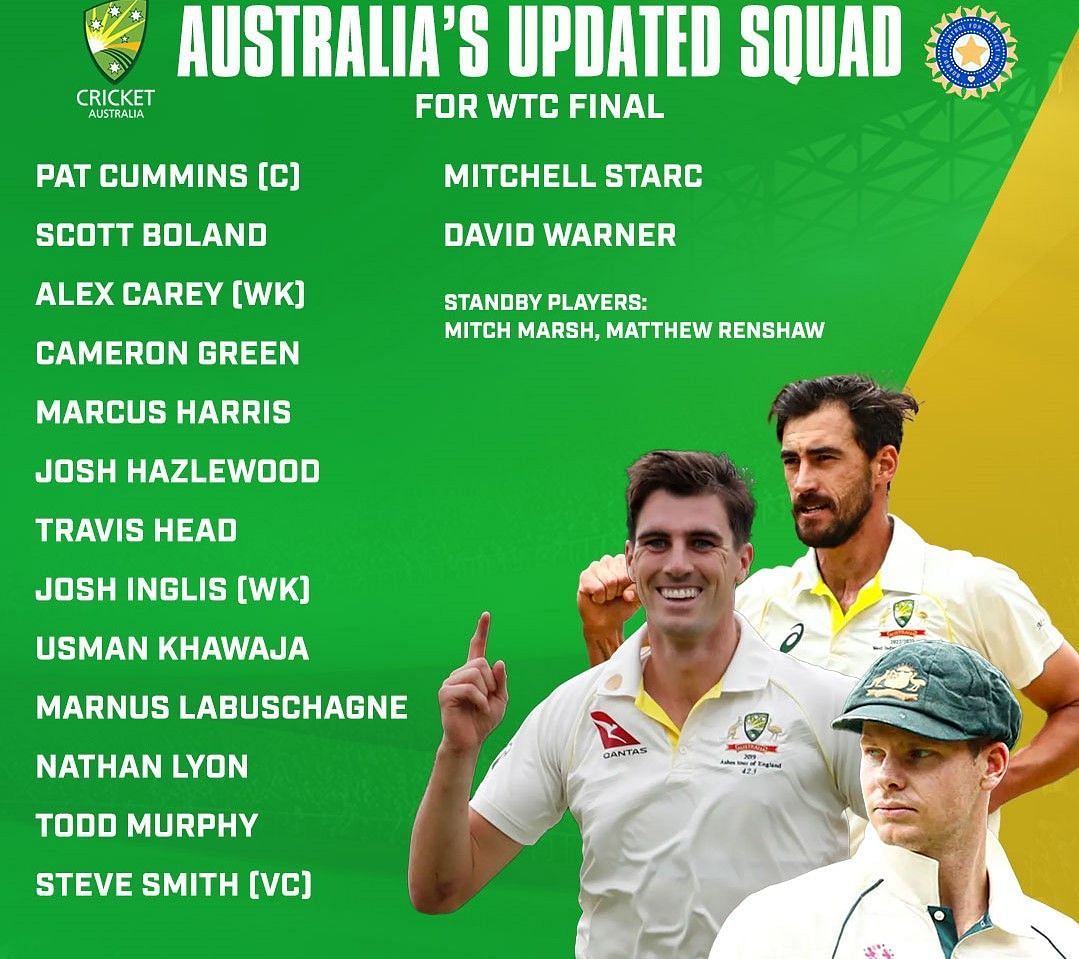 Australia named a formidable squad as Pat Cummins returns to lead them after missing the last two Tests on the India tour. Western Australia batter Marcus Harris was picked up for the WTC final while all-rounder Mitchell Marsh was named in the reserves along with Matt Renshaw.