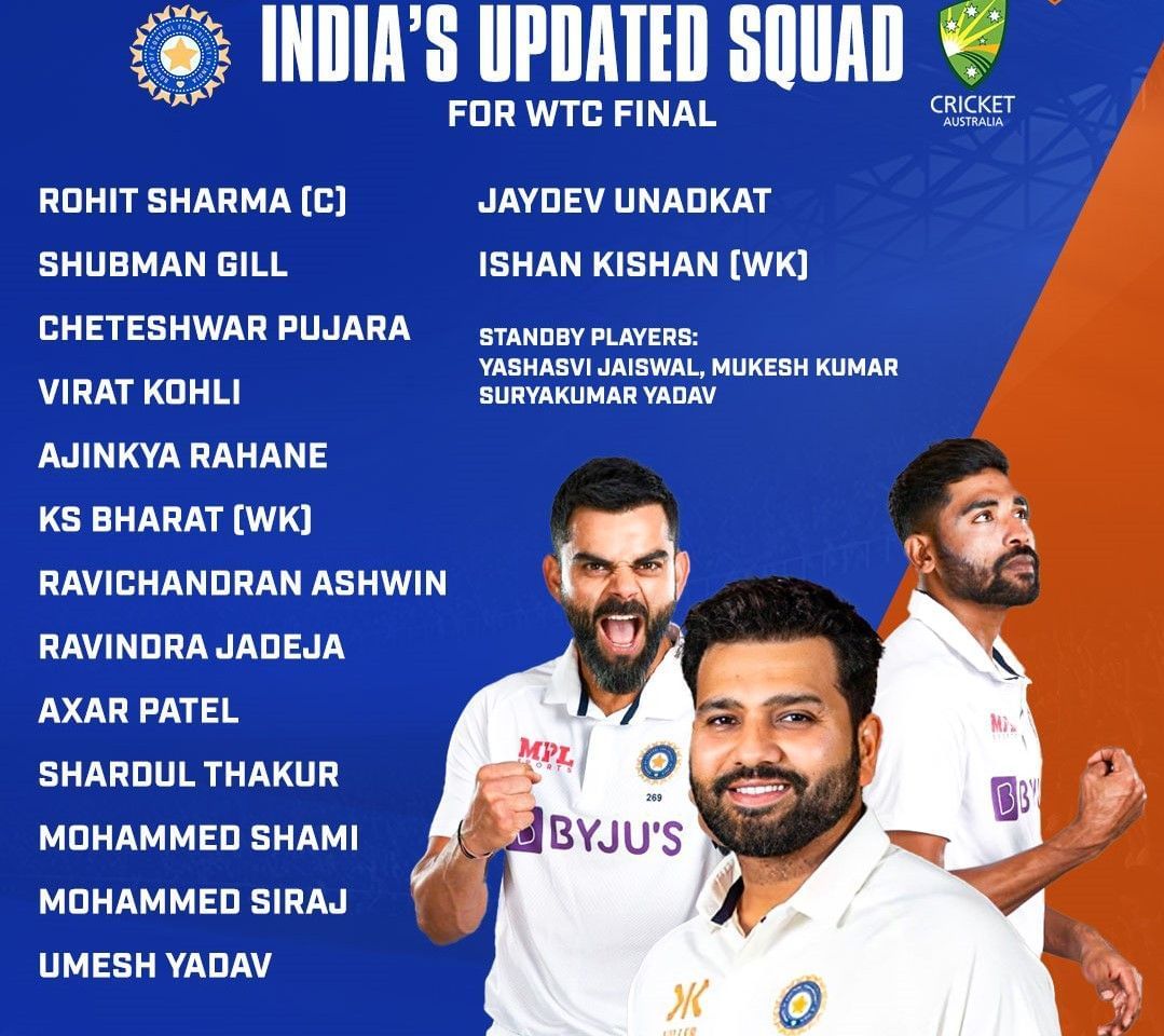 On May 8, the Indian board ruled out opening batter KL Rahul from the squad after he suffered an injury to his right upper hand during an IPL match between Lucknow Super Giants and Royal Challengers Bangalore in the IPL.