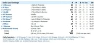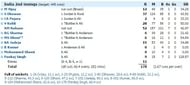 A more heavy and painful defeat. The Indian batting innings admittedly never took off, but the way the tail cooped up into a coccon cannot be passed over: from 105/7 to 161 all out. Ravichandran remained unbeaten on a valiant 46, but it was ultimately for nothing, seeing that the batsmen at the other end continued to get skittled out cheaply.