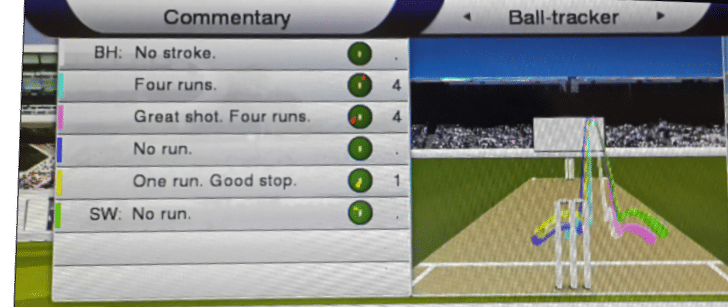 Keeping in tune with the realism of the game, the commentator too minces no words in criticising the umpire for a wrong decision. However, commentary is otherwise extremely trite with Jonathan Agnew expressing his delight when the ball is hit for a boundary in nine different ways, expressing his ecstasy when the ball is hit for a six in six different ways, expressing his surprise when a batsman is bowled in five different ways and expressing various other emotions for various other dismissals in a grand total of ten different ways (all according to the writer’s calculations), making for thirty different lines of commentary.
