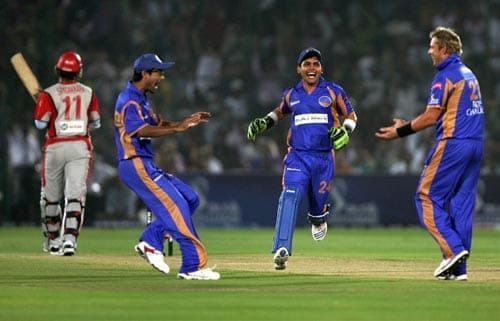 While chasing, RR suffered early blows, when they lost Niraj Patel and Kamran Akmal for 2 and 6 runs respectively. This was when Shane Watson joined hands with Pathan, and the duo put a partnership of 65 runs. RR needed 8 runs in the last over, with Shane Warne and Sohail Tanvir on the crease and Lakshmipathy Balaji running with the ball. However, they managed to win this nail-biting match on the last ball by 3 wickets.