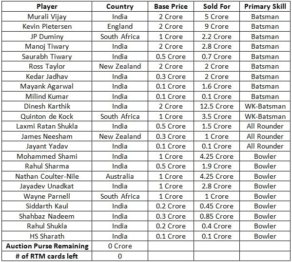 The franchise made full use of the purse to build an impressive 23-man squad for the IPL 2014 season.