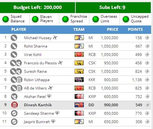 I know Akshar plays the very next match, but Vohra and Nair are much better options on a placid deck and Bumrah, the best uncapped player for this fixture, hasn’t raked in points.