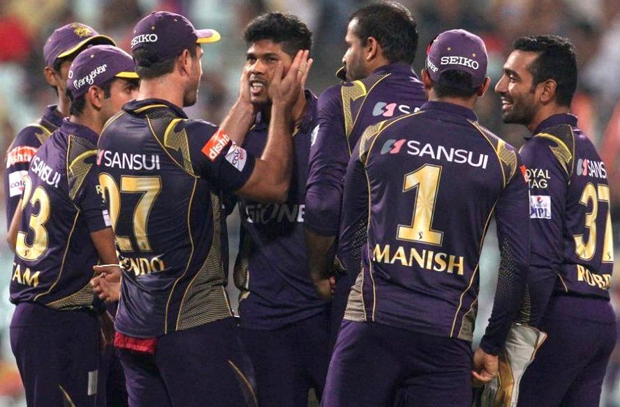 KKR XI: Robin Uthappa (wk), Gautam Gambhir (Captain), Manish Pandey, Suryakumar Yadav, Andre Russell, Ryan ten Doeschate, Yusuf Pathan, Johan Botha, Piyush Chawla, Brad Hogg, Umesh Yadav