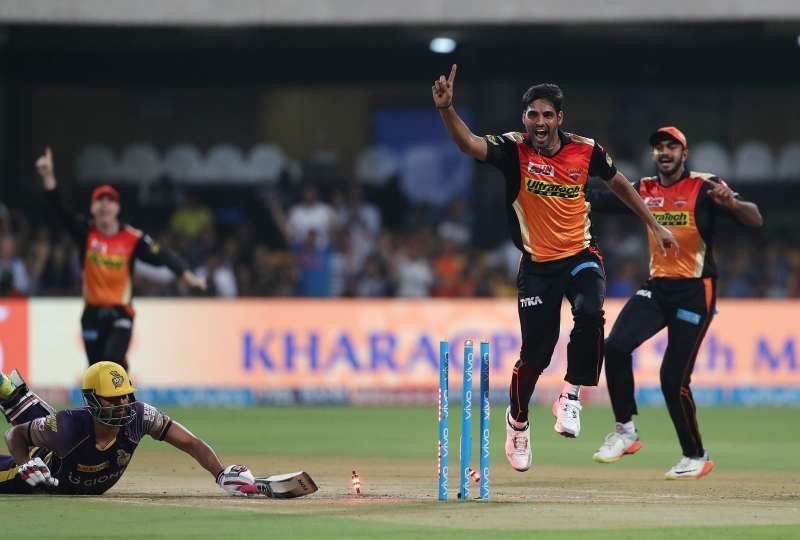 However, cometh the hour, cometh the man! Bhuvi stepped up and got 2 wickets in the very first over to show the Knight Riders that the defending champions won’t go out without a fight! After being smacked for a 6 by Chris Lynn, the pacer got him out in the very next ball before running Yusuf Pathan out to have Gautam Gambhir’s men reeling at 7/2 in the first over itself.