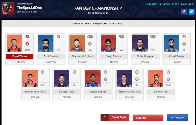 Parthiv Patel gets off once in a season every year like he did against Gujarat Lions the other night, but it is not something you should be looking seriously into. Jasprit Bumrah, Mitchell McClenaghan and Lasith Malinga all look good for a couple of wickets, but unless you see an opportunity to take them along for more than a couple of matches, it is not advisable to get them in.