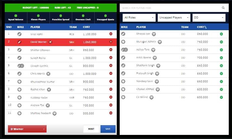 A lot of what course this match is likely to take will depend on the deck. The last one was a little tricky, so look for clues at the toss as to what the captains say, how the team combinations are, and decide accordingly. Whichever way it goes, there is no reason for you to not have David Warner, Bhuvneshwar Kumar and Chris Morris in your team.