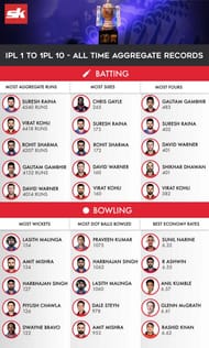 Indians occupy the top 4 spots in the list of aggregate run scorers whereas there are three Indians on the list of the top 5 wicket takers across all ten seasons. Chris Gayle has hit the most sixes in the league and Gautam Gambhir the most fours.
