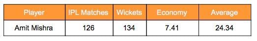 Amit Mishra (Delhi Daredevils) - One of the most successful leg-spinners in the IPL, Mishra can turn the ball square. He bowls slow and with a wonderful loop, tempting the batsman and resulting in a false shot. Mishra bowls a very well-disguised googly as well.