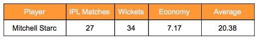 Mitchell Starc (Royal Challengers Bangalore IPL 2016) - One of the best fast bowlers in the world, Starc can consistently clock the speeds of over 150 Kmph. During the death overs, Starc bowls lightening fast yorkers which are unplayable. He did not participate in IPL 2017.