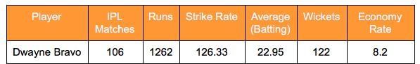 Dwayne Bravo (Gujarat Lions) - The West Indian all-rounder with over 100 matches in IPL, Bravo played a pivotal role in the success of his former team - Chennai Super Kings. The wristy batsman plays spin very well. As a bowler, he can bamboozle the best of the batsmen with his slower yorkers.