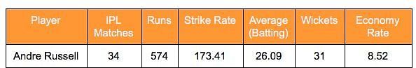 Andre Russell (Kolkata Knight Riders - 2016) - The exuberant KKR all-rounder is a hard-hitting batsman, excellent death overs bowler, and an outstanding fielder.