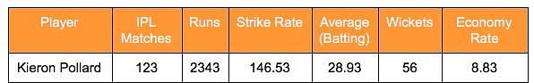 Kieron Pollard (Mumbai Indians) - Pollard has been one of the finest all-rounders in IPL. A destructive batsman, handy bowler and an excellent fielder, he has won many games for MI.