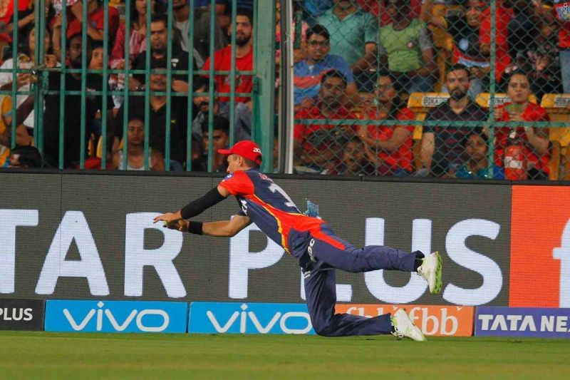 The RCB skipper whipped it and timed it pretty well, but he found a flying Trent Boult at the square-leg boundary. It was going over Boult’s head, but he timed his jump to perfection and grabbed a one-handed stunner. The fact that Boult went with his wrong hand (he is left-handed) made it special.