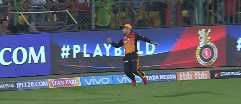 Amidst all the carnage the RCB batsmen were inflicting on SRH, Rashid Khan remained unscathed, conceding just 27 runs in his 4 overs while also picking up the three key wickets of Virat Kohli, AB de Villiers, and Moeen Ali.