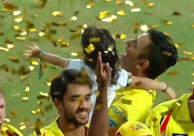 When he found his daughter Ziva come running towards him, Dhoni turned around from his team celebration, and took Ziva in his arms and gave her a big old swing.