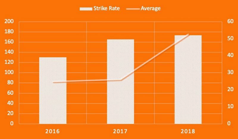 In fact, he scored an impressive 684 runs from 14 games at a monstrous strike rate of 173.04. And an average of over 50 shows that he isn't just a boom-or-bust player, but a consistent one. He even had 5 fifties to boast along with that phenomenal hundred. And his consistency has even found a way to be consistent while maintaining a superb strike-rate.