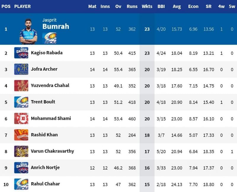 in the IPL 2020 Purple Cap list, Jofra Archer picked his 20th wicket of the season and moved up to 3rd in the table. Mohammad Shami, however, dropped 1 slot after going wicketless against CSK today. He is also on 20 wickets, but occupies 6th position by virtue of having a relatively-poor economy rate.