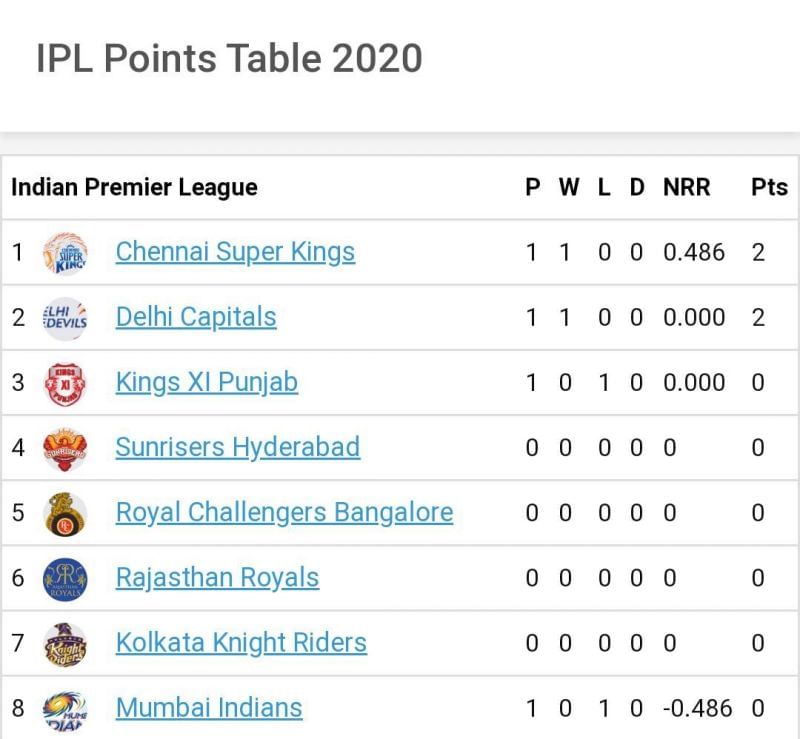 Even though four of the teams are yet to begin their campaign, sitting atop the points table is a franchise which has dominated the league from its inaugural edition – Chennai Super Kings (CSK), and they are followed by the Delhi Capitals (DC).