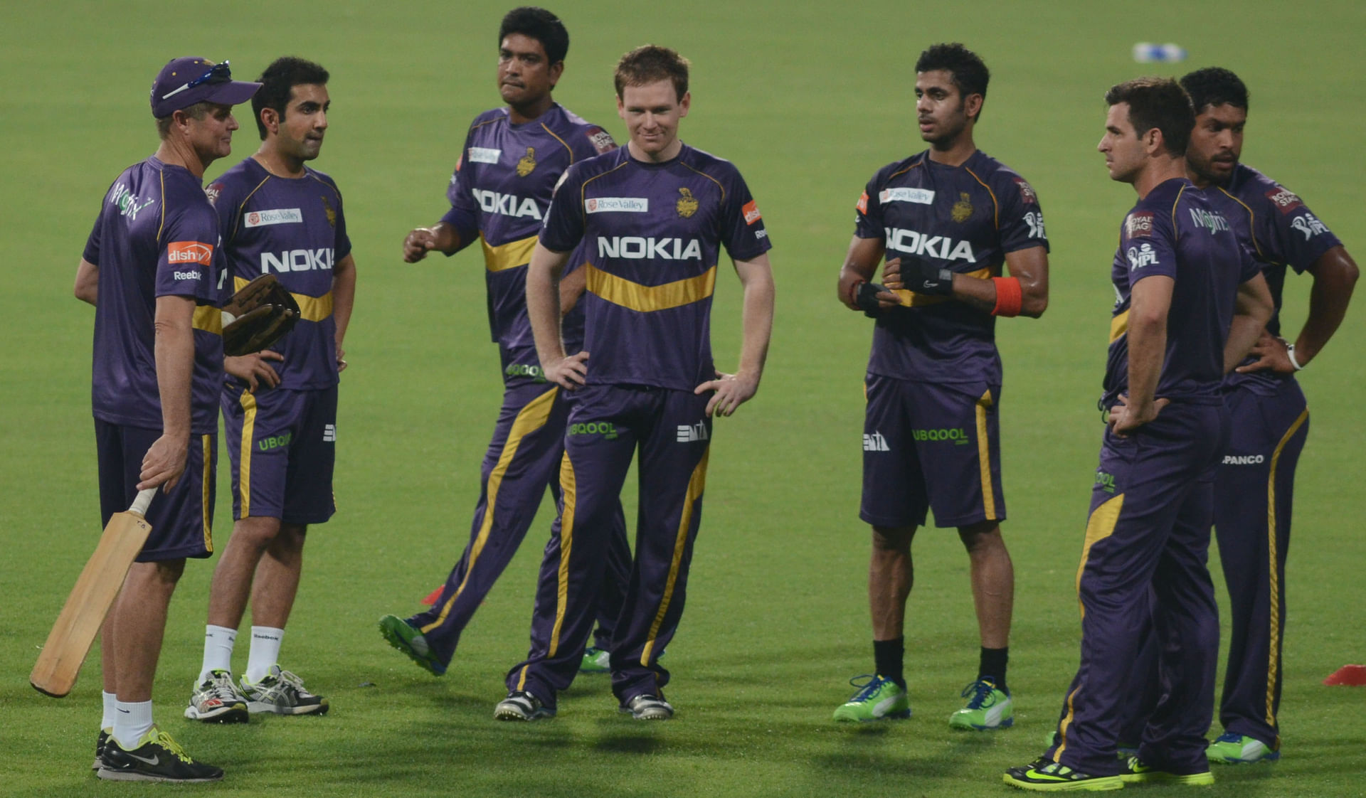 Kolkata Knight Riders players practice at the Eden Gardens in Kolkata ahead of their opening IPL game against Delhi Daredevils (Photo: IANS)