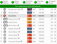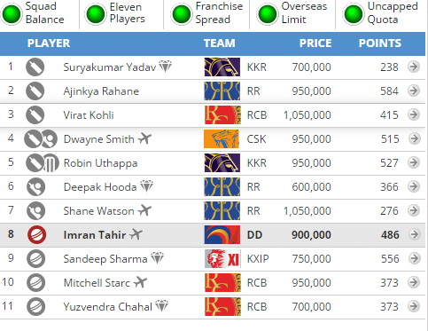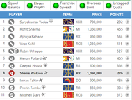 I haven’t loaded my team with players from Chennai Super Kings and Kolkata Knight Riders despite these two teams playing each other twice in a span of 3 games. These double games can sometimes be misleading. Trying to cash in on the double game, if I play someone like Gautam Gambhir, I would be forced to leave out Shane Watson who has the capacity to return more points, albeit a little late. That the CSK home leg will be played on a slow deck didn’t help the cause as well.