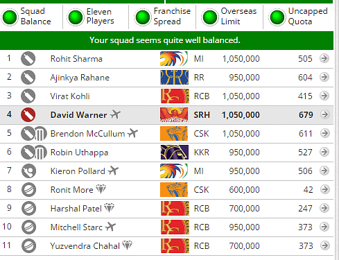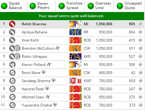 Sarfaraz Khan bats at No.6, which doesn’t help from a fantasy perspective – so I would settle with Chahal as my uncapped player. I already have Harshal Patel and Suryakumar Yadav in my team.