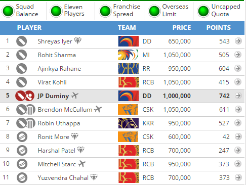 With Ajinkya Rahane already in, JP Duminy will be the only other capped player I will get into my team. Shane Watson and Imran Tahir are two eyebrow-raising omissions. While Watson won’t find it easy handling the Daredevils leg-spin duo, Tahir will be bowling to batsmen who are adept in playing slow bowling.