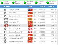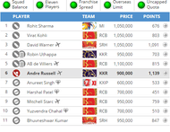 I missed making changes to my team for the RCB vs MI match, so my team would look a lot different from the one you find here. It’s not that I am trying something different. You really can’t compensate for 600-odd points at this stage of the game. The damage done as a result of me missing out on the game is manifold: it is not just the points lost, but I can’t use the wasted subs on anyone else too, as I will have to bring in the same players again for RCB’s next match.