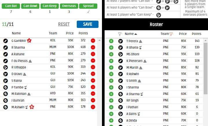 Suresh Raina’s performance this match depends on how he deals Watson, who can bounce him out. With Tabraiz Shasmi in, I expect Aaron Finch to be choked by spin after the powerplay overs. Also, differentials only come into play when there is a chance of the popular picks failing.