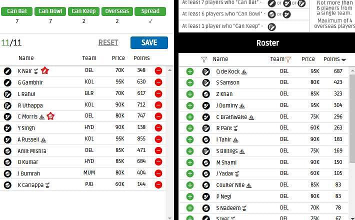 I don’t expect batsmen to do much on this deck, so I am not wasting my substitutions on any of them. I will instead get Karun Nair in as a free substitute and captain him. This might change if he doesn't bat at No.3, though.