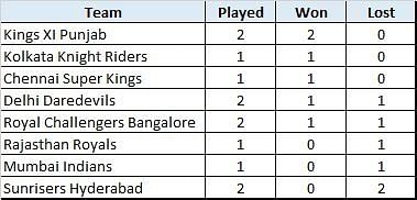 Kings XI Punjab, Kolkata Knight Riders, and Chennai Super Kings have a 100% win record at the venue.