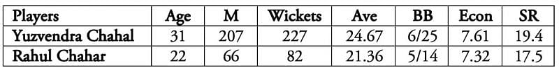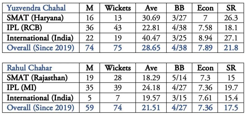 Yuzvendra Chahal vs Rahul Chahar in T20 cricket since 2019