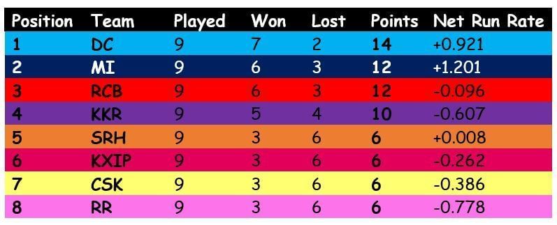 Similarly, Kolkata Knight Riders and Sunrisers Hyderabad being separated by four points on the actual table would have had just a two-point difference had the points been split.
