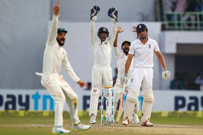 No repeat of the resolute defence displayed at Visakhapatnam was to be repeated, however, as Jadeja came on to snare his bunny as if on cue. It was once again, leg before wicket. Thrice in four matches, Cook was dismissed leg before wicket to Ravi Jadeja. There needed to be some correction for a batsman of the stature of the English captain. The correction did come in the first innings in Chennai, but it wasn’t enough.