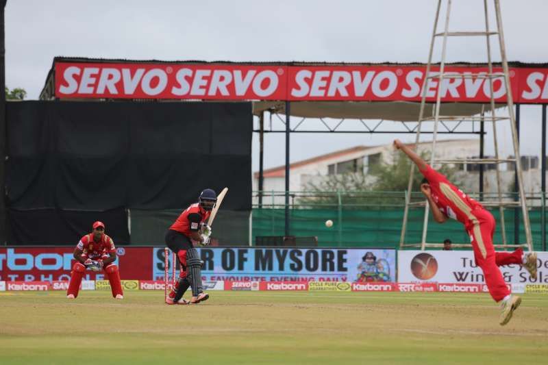 Put in to bat, Mangalore United struggled as Prasidh Krishna bowled well. Only skipper Karun Nair (25 n.o, 17b, 1x6, 3x4) made a worthwhile score as the team made 48 for six in seven overs.