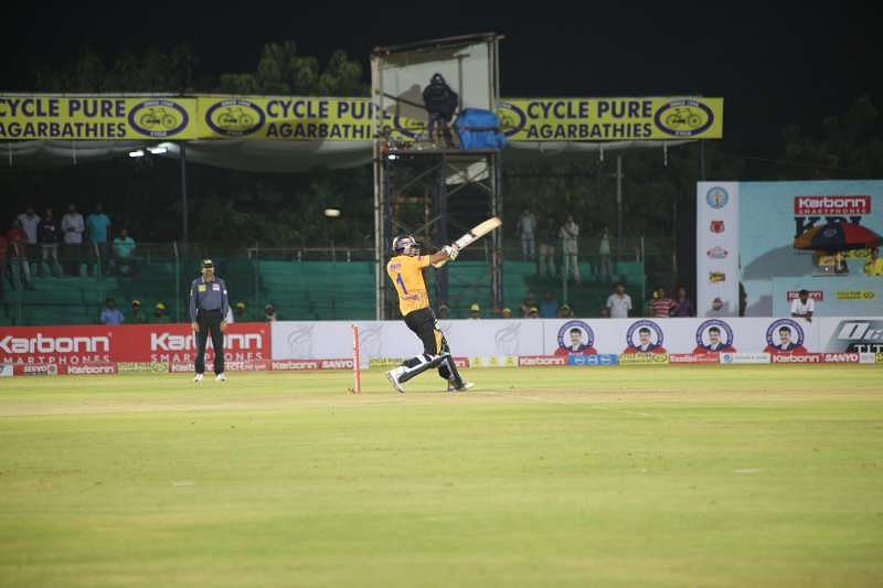 The left-right combination of Rohan Kadam (50; 40b, 1x6, 4x4) and KB Pawan (54; 37b, 5x6, 3x4) had given a solid start by putting on 101 runs for the first wicket in 11 overs. However, the dismissal of these two batsmen wrecked Tuskers’ momentum.