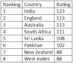 According to the latest rankings for ODI teams, there was no change in positions for any side. India gained a point to widen its gap at the top to 10 over second-placed England, who lost a point after yesterday’s loss.
