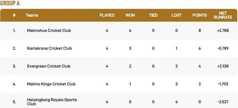 Following are the team standings in the two groups of the Malmo T10 League 2020 after the conclusion of the group stage action -
